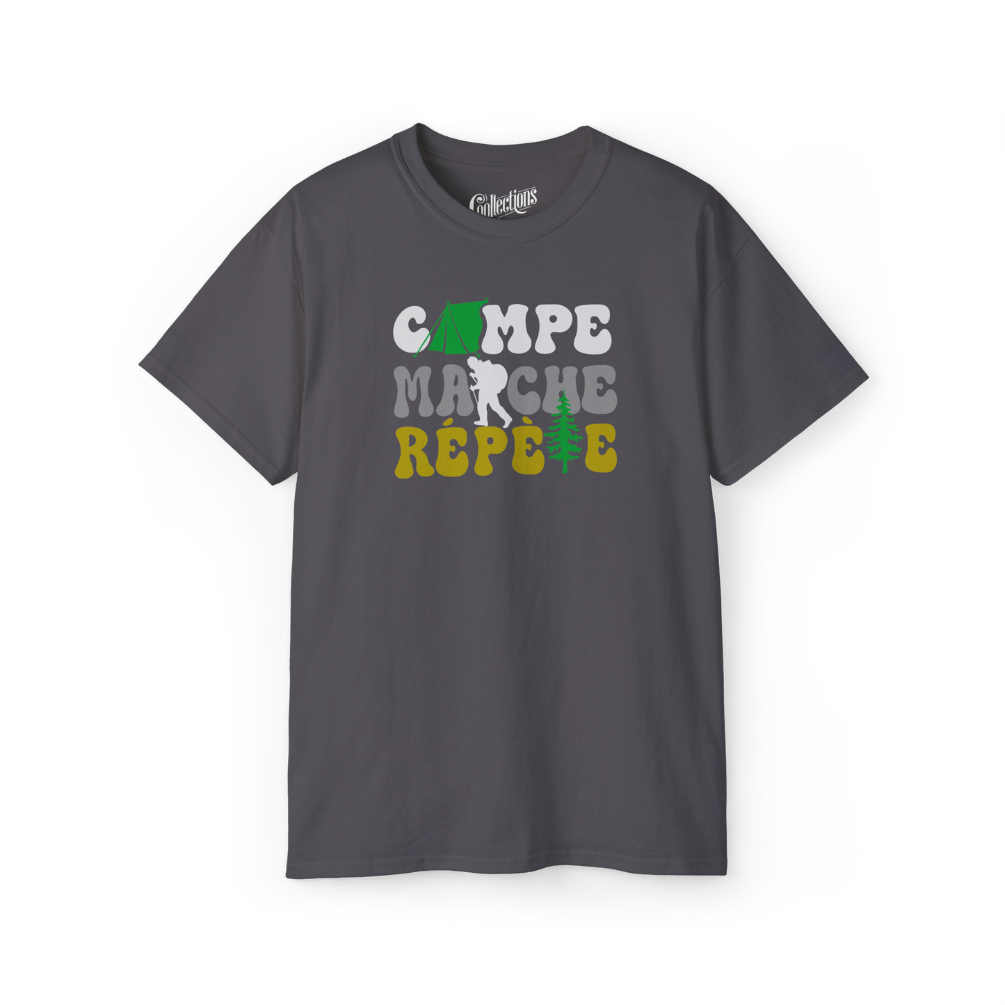 Express your camping style with this simple and urban "Camp, hike, repeat" t-shirt. π²πΆ A classic for outdoor fans who live the joy of camping on repeat!